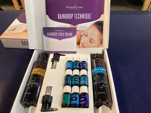 Yes, but it is also an incredible massage technique that you need to know a little more about. Some call it a Raindrop Massage or Raindrop Technique. It is not your typical massage, but rather a feather technique, working from the feet and up the spine, combined with therapeutic grade essential oils~9 specific ones~to stimulate the immune system, enhance positive emotions, ease respiratory discomfort, promote relaxation, and ease muscle discomfort.